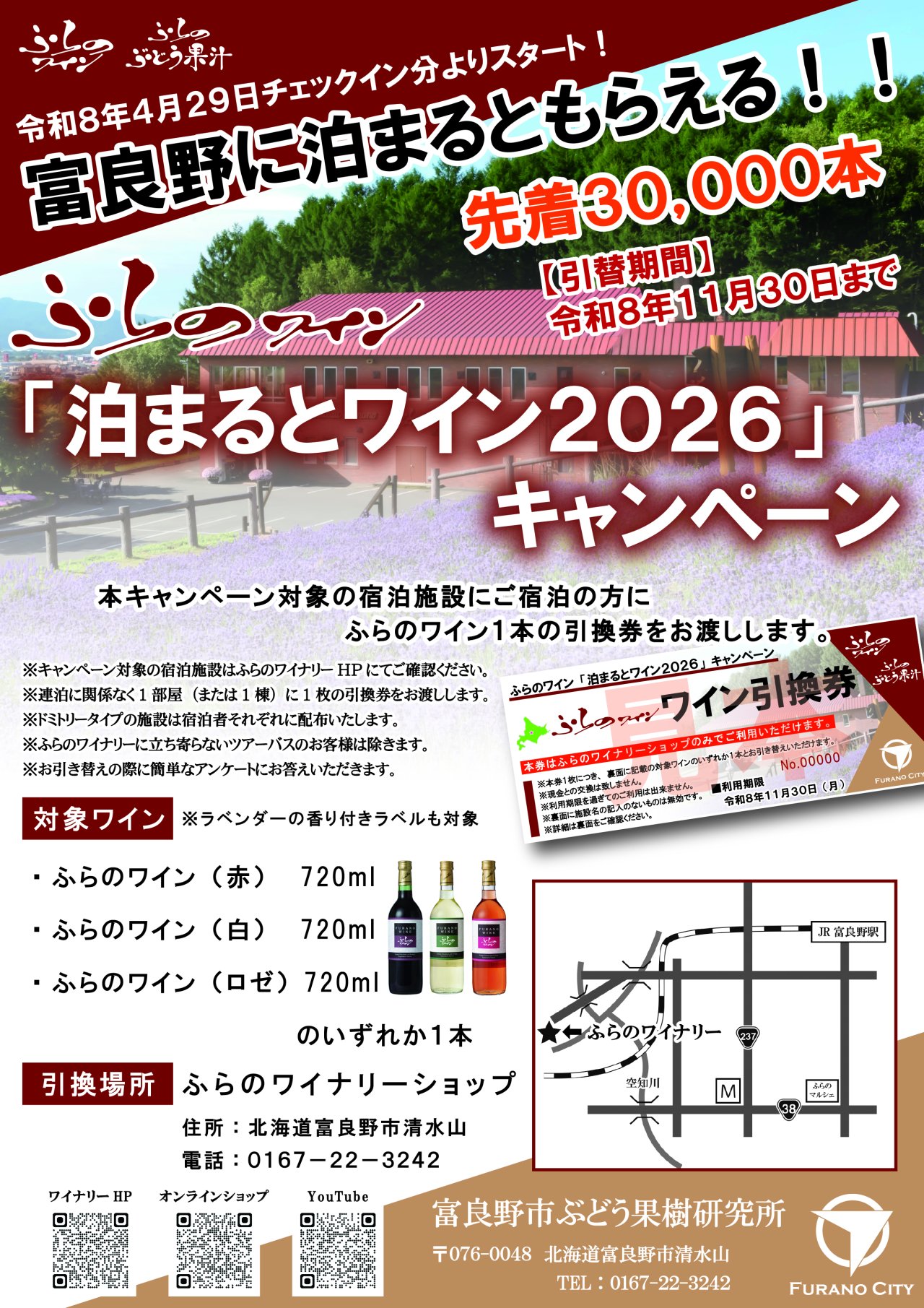 富良野に泊まるともらえる!!「泊まるとワイン2026」キャンペーンのお知らせ